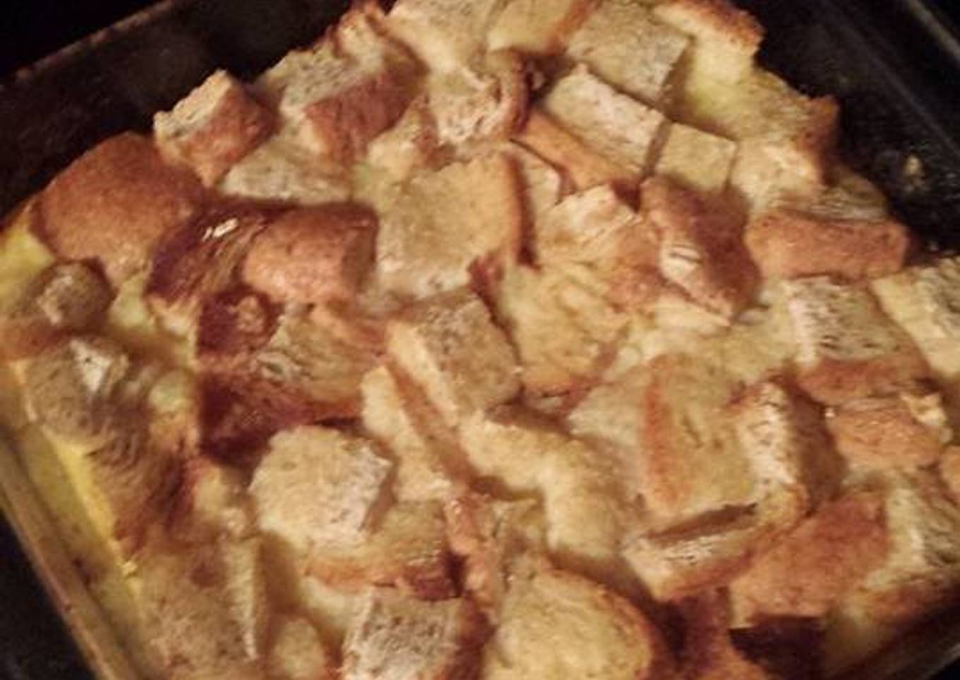 - Top mixture with the bread cubes. Press bread down slightly into the mixture.