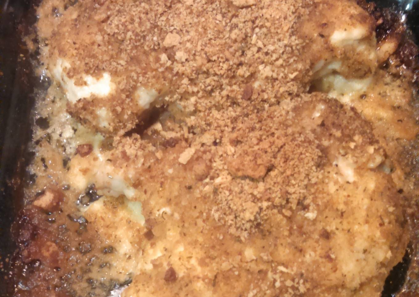 - Evenly top chicken with mayonnaise mixture, then sprinkle with the bread crumbs.