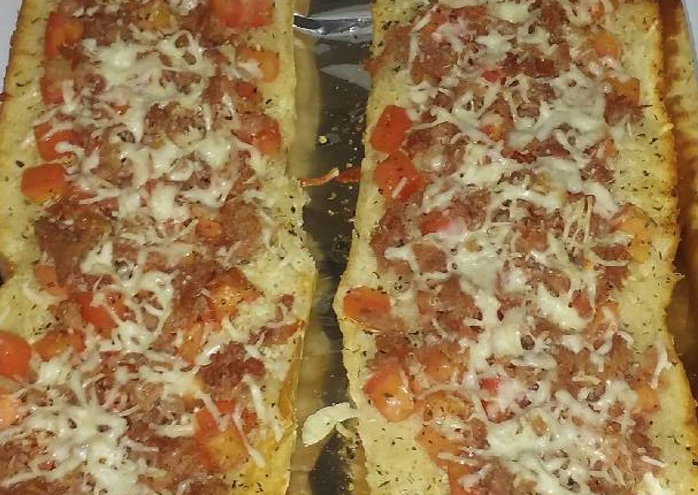 - Preheat the oven to 425°F. Slice the loaf of French bread in half, lengthwise. Set both halves onto a foil lined baking ban. Set aside.
