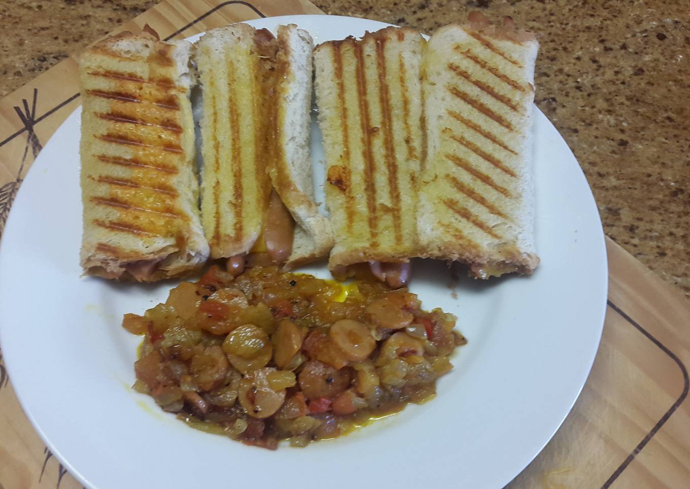 - Take the Vienna slices and some cheese and arrange it length ways on the bread. Add some sweet chilli sauce to taste. Be careful not to put too much, or you won't be able to close it properly.