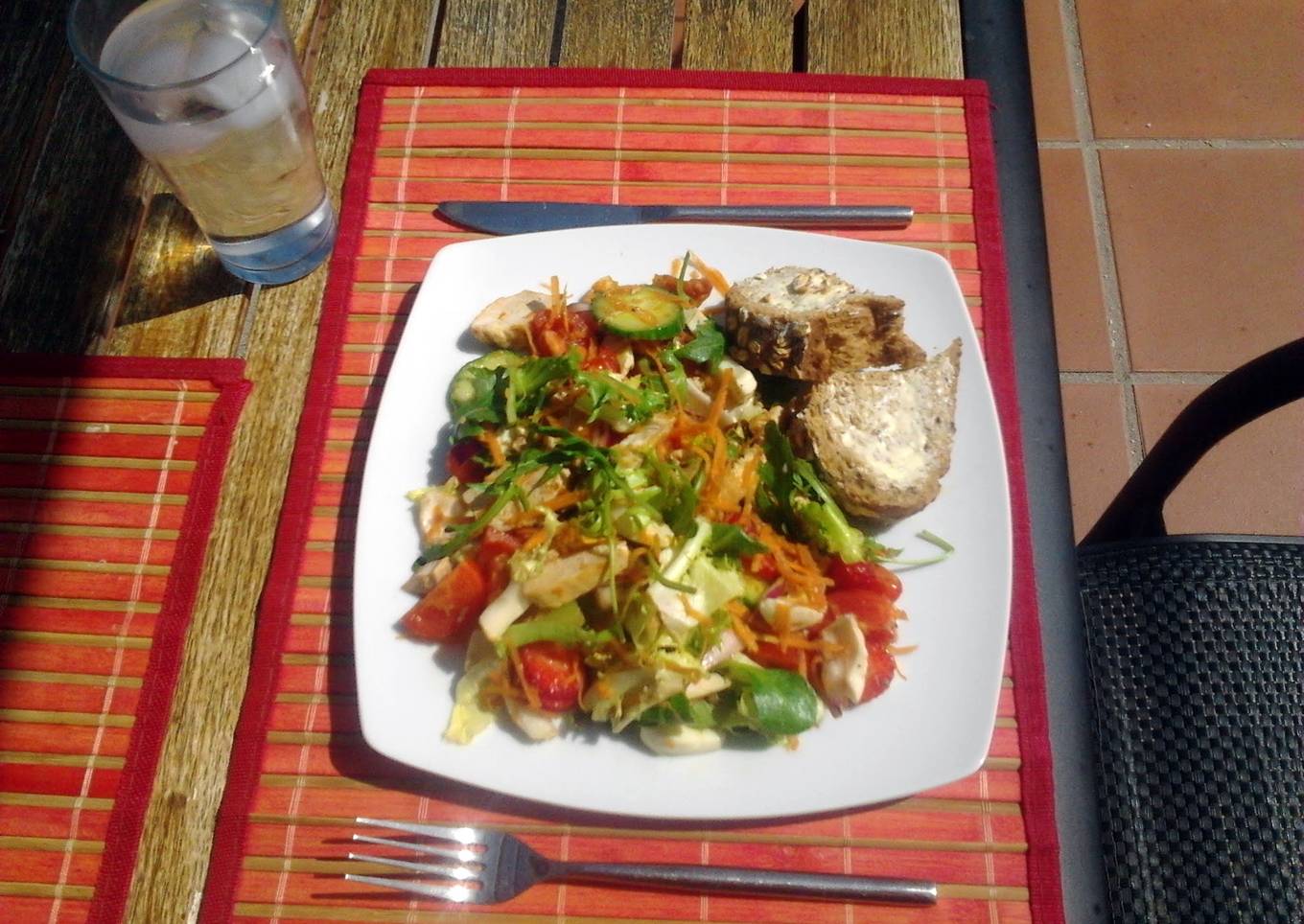 - Prepare vegetables and leave in a bowl. Pour balsamic vinegar over salad leaves and vegetables and mix well.