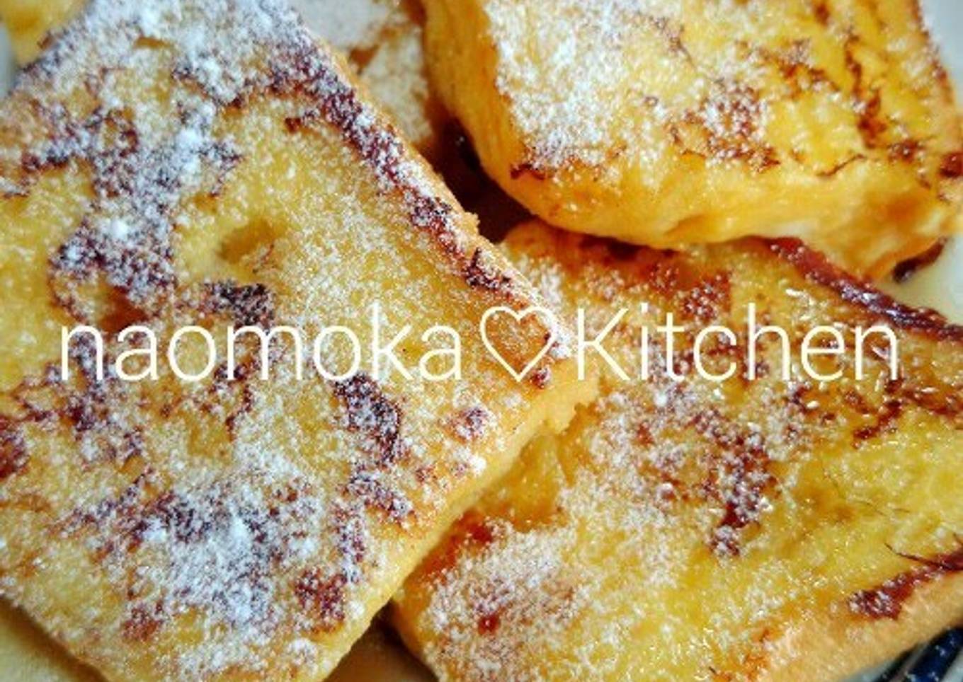 Just put the egg mixture lightly on both sides of the bread. Don't oversoak it! Recipe by Naomoka