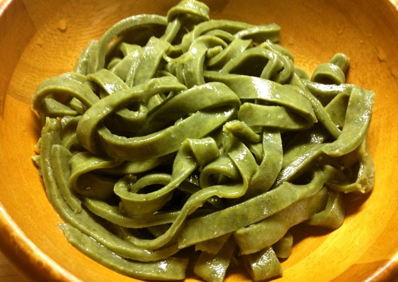 While eating tempura, I was wondering what I can knead into udon noodle dough. Then I came up with the idea of kneading matcha into udon. They are a slightly bitter, so they're great for grown-up palates.