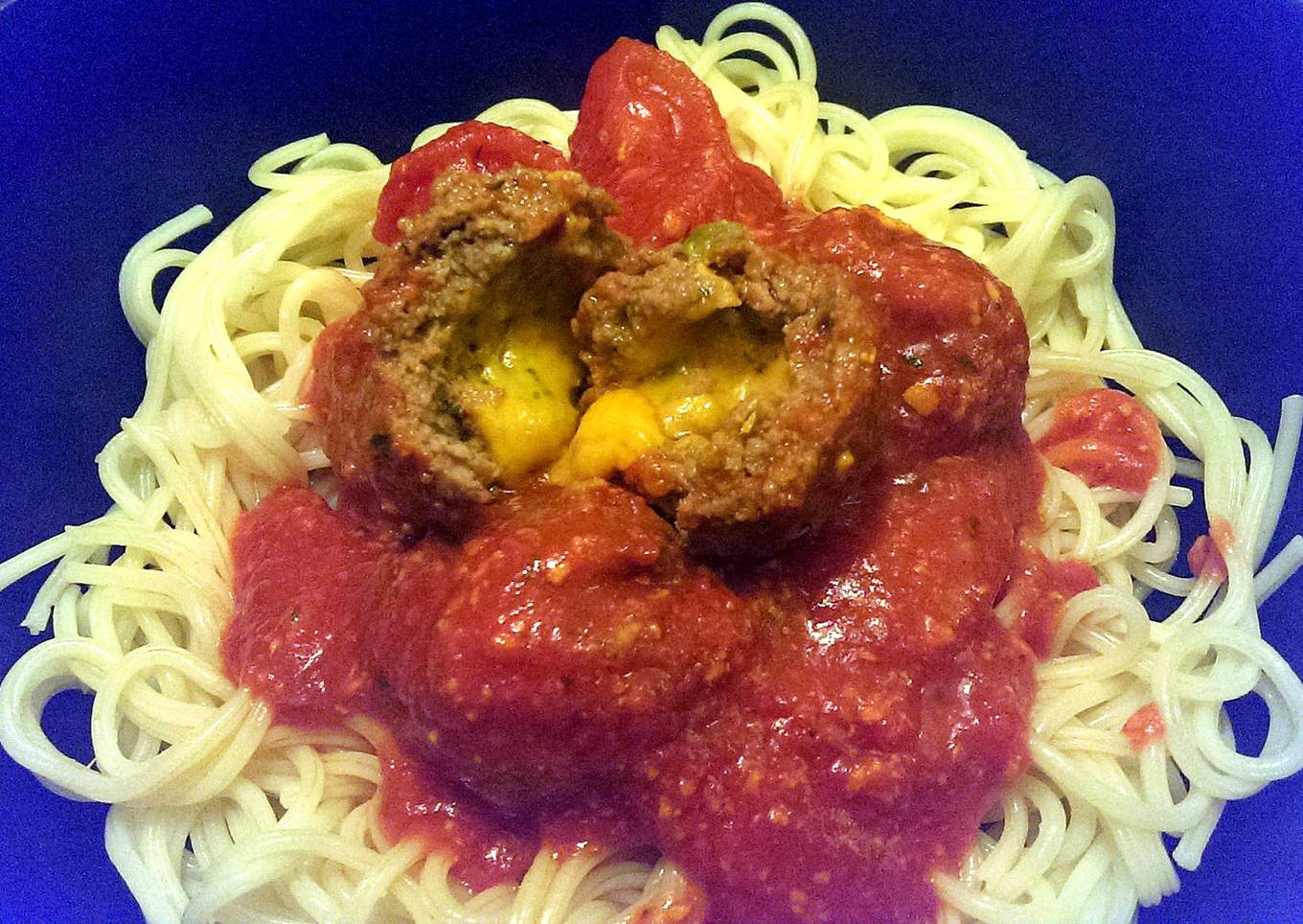 - If your meatballs leaked any cheese, pick this up (avoiding any oil) and add to the sauce.